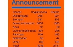 The latest Ministry of Health cancer statistics are now available. The death rate for gastro-intestinal cancers has dropped from 59% to 56%. Pancreatic cancer death rate has dropped the most from 94% to 84% in the last year. Men have considerably higher rates of GI cancers. GI cancers account for 22.5% of all cancers and 30.8% of all deaths from cancer. Help us raise funds to fight this disease. Text GICI to 2449 to donate $3 or www.gutcancer.org.nz/donate.